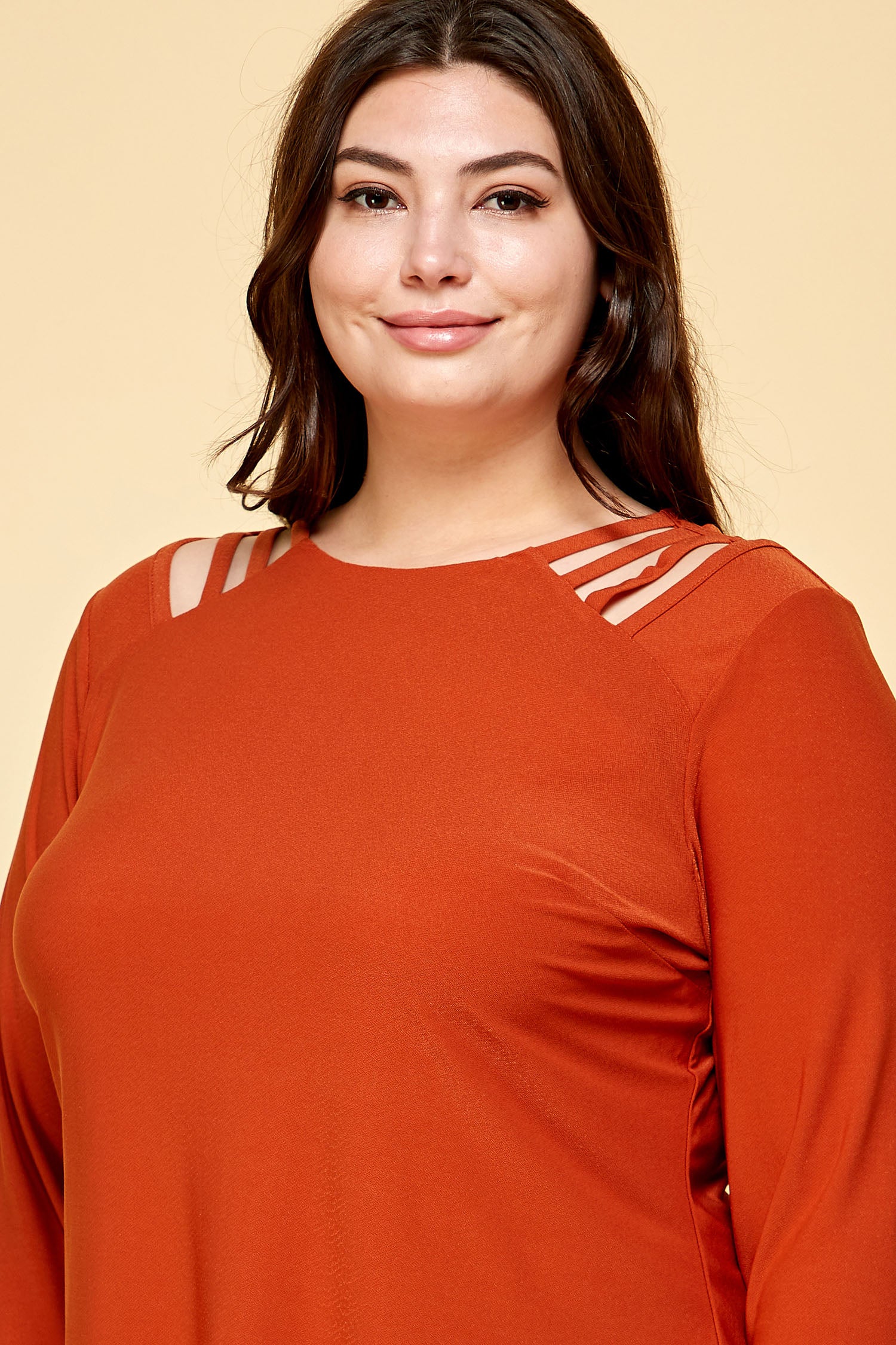 PLUS SIZE LONG SLEEVE CAGE SHOULDER TOP