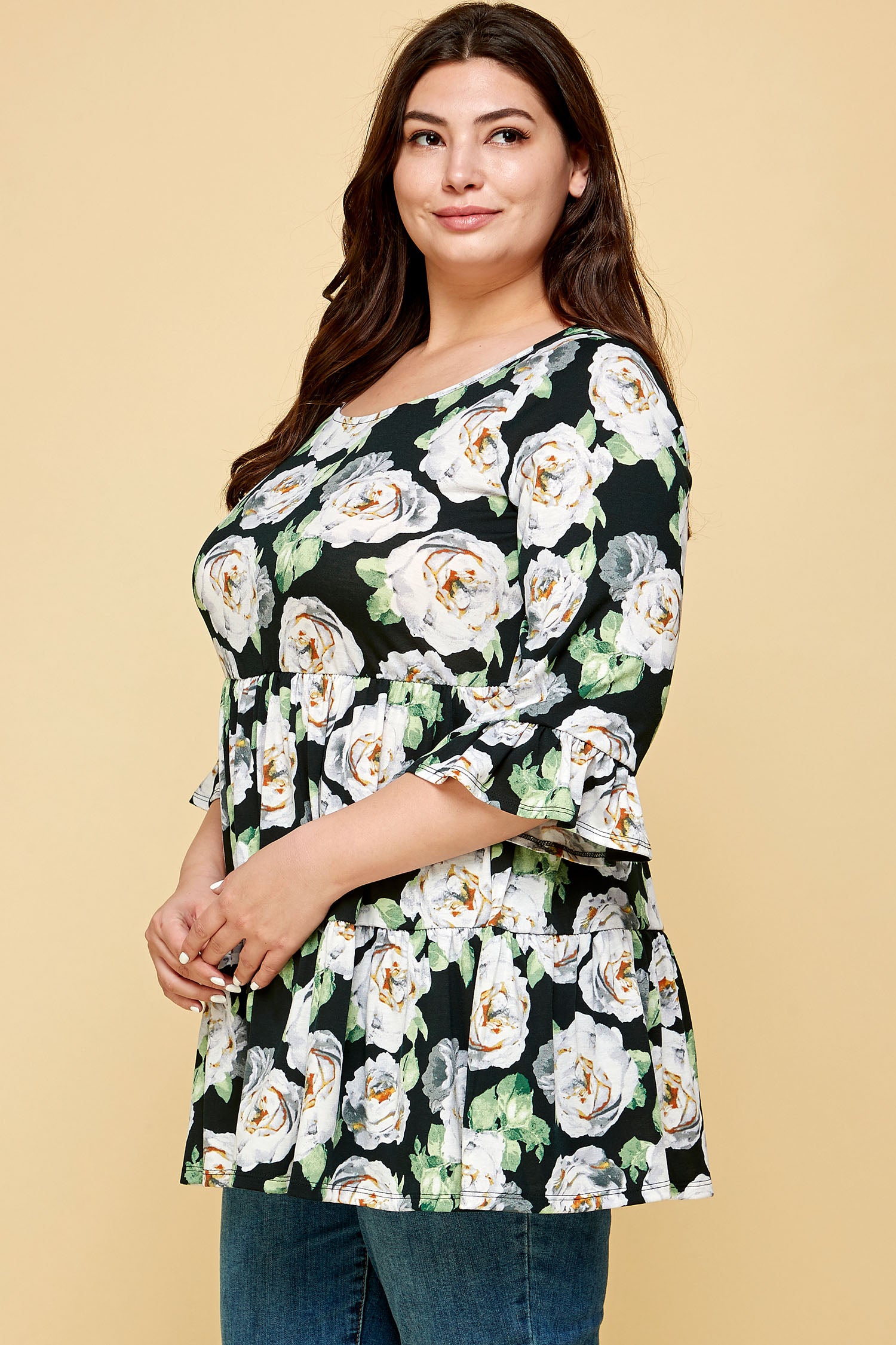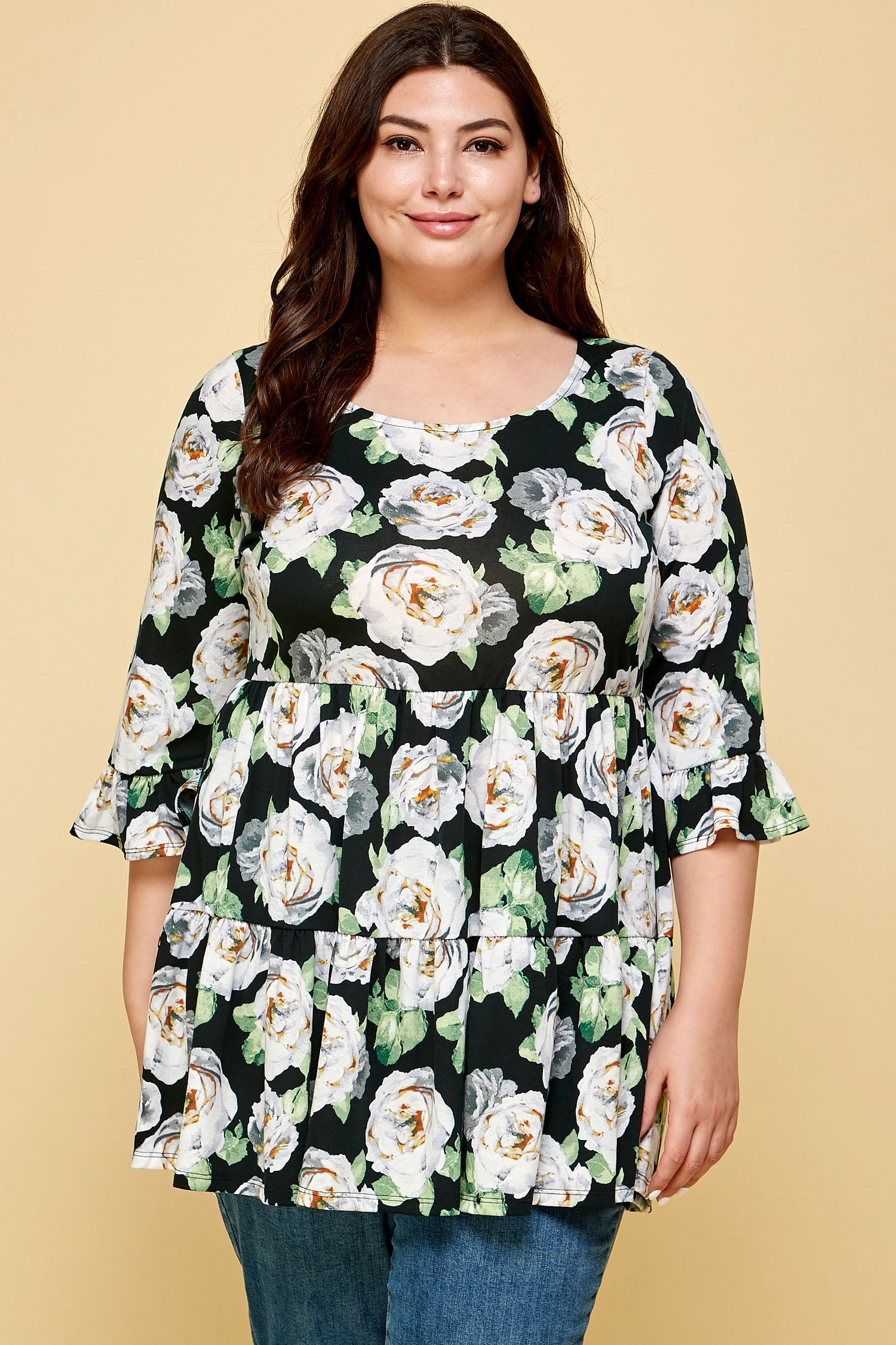 PLUS SIZE QUARTER SLEEVE TUNIC TOP